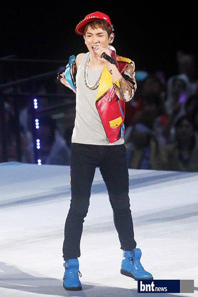 Taemin se viste de chica para el concierto del dia de hoy en el estado olimpico de Seúl, ayudando en la performance a Kyunhyun y Changmin