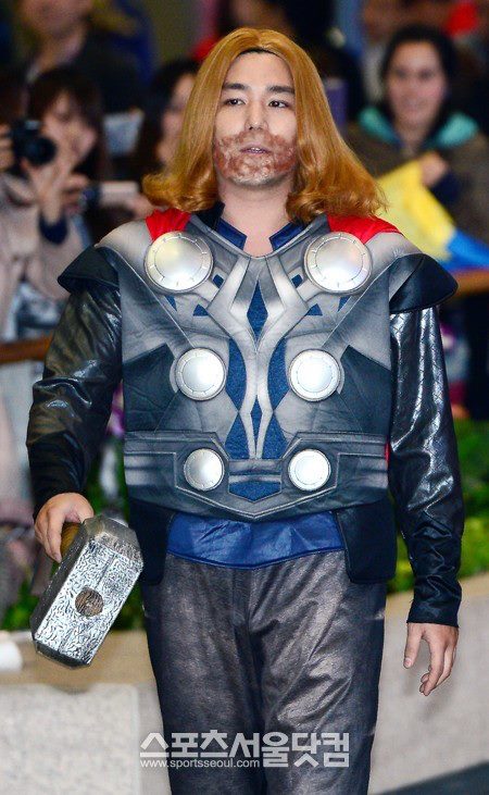 SUPER JUNIOR en el aeropuerto de Incheon vestidos de superhéroes: Eunhyuk/ Sungmin/ Siwon/ Kangin/ henry